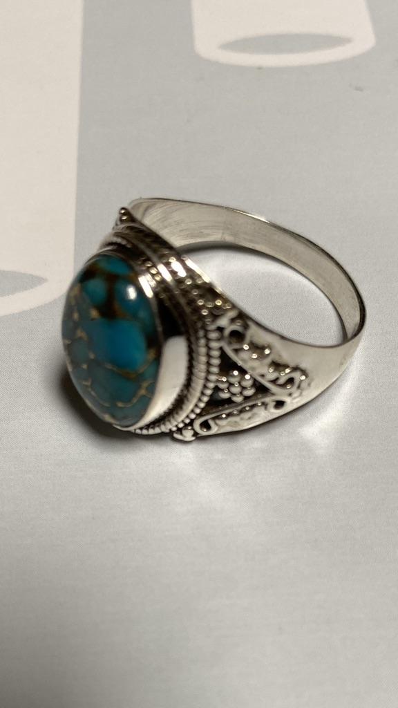 Заявление о кольце из стерлингового серебра 925 пробы с медью и бирюзой натуральной овальной формы, украшенное бисером, для женщин и девочек — купить товар онлайн с бесплатной доставкой по всему миру!