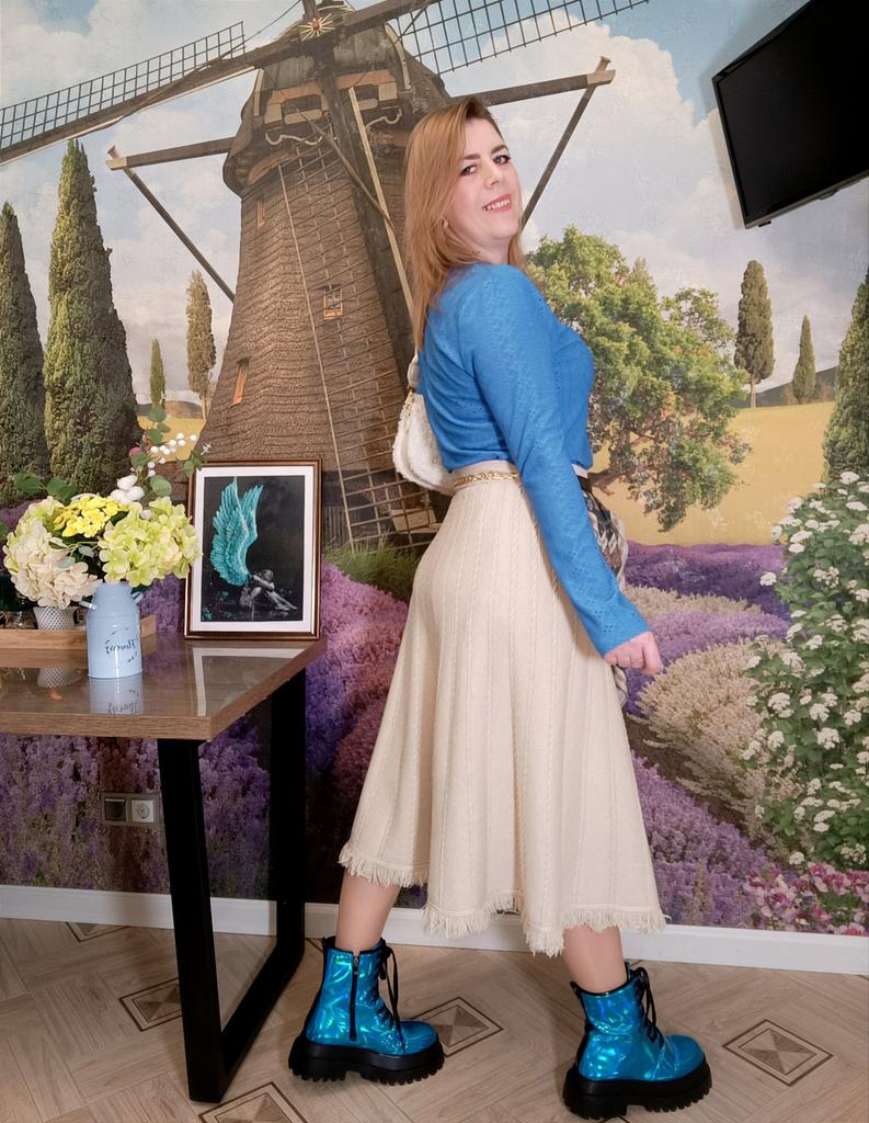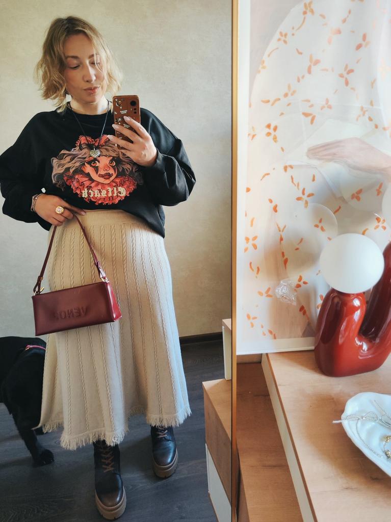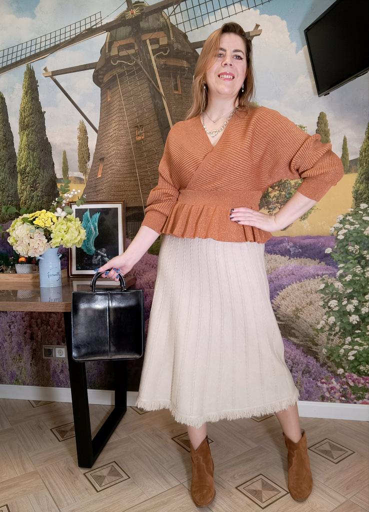 БАХРОМА! ТРИКОТАЖНАЯ ЮБКА -МИДИ🏷️ Привет👋 Покажу вам чудесную трикотажную юбку,на которую однозначно стоит обратить внимание. Она уютная, теплая и стильная. А бахрома по нижнему краю только добавляет шарма и "изюма". Не первый раз покупаю в этом магазине. В очередной раз меня очень порадовало качество, пошив фабричный. Продавец внимательный, всегда аккуратно упаковывает товар и кладет маленькие подарочки 😊👍 ✔️Юбка в длине миди. А-силуэта. Машинная вязка. Интересное плетение, вертикальные косички зрительно вытягивают силуэт. Бахрома снизу пришита, она на ленте, поэтому не стоит волноваться, юбка не будет распускаться и после стирки. ✔️Трикотаж тонкий,но теплый. Состав: акрил + хлопок. Хорошо тянется. Не просвечивает .Приятный к телу. Не имеет запаха. Легко гладится. Не электризуется. На поясе широкая удобная резинка. Шов всего один, можно носит его сбоку или сзади. На выбор 6 расцветок. У меня второй вариант, я бы назвала его "светлый беж" Размер единый. Мой рост 173см. ОТ 85см. ОБ 107см. Размер одежды 48 -50. Замеры: ✏️длина 78см ✏️ОТ 68 - 98см ✏️ОБ 114- 120см ✏️ширина резинки 5см ✏️ширина бахромы 4см Юбка отлично сочетается в гардеробе. Хорошо смотрится с разной обувью. Подойдёт на все сезоны, кроме лета. Рекомендую к покупке ✅ Всем отличного шопинга 👋 #elena_likui #Джум_доставил #Alyaboomty #юбка_трикотажная