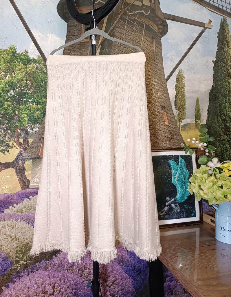 Корейская мода, осенне-зимняя женская юбка-миди с высокой талией, серая, черная, абрикосовая, кофейная, толстая теплая юбка, элегантная женская юбка с кисточками, женские юбки