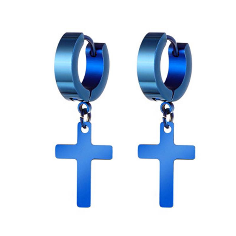 Темно-синие, черные серьги-крестики из нержавеющей стали, расширенные круглые серьги-кольца Pendientes, украшения для пирсинга ушей