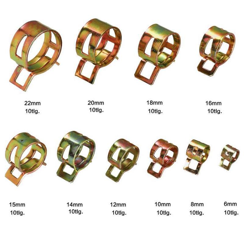 100 шт. комплект хомутов для шлангов, пружинные зажимы, шланг для бензинового топлива, 6-22 мм, регулируемый