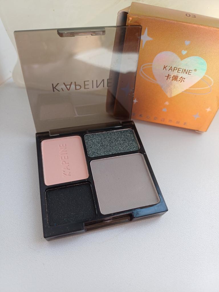 Тени✨️ Доставка: месяц Приходят в коробочке. При доставке не повредились, внутри тени целы) В палетке 4 цвета. Все они очень красивые) Оттенки: розовый,чёрный и серый. Два оттенка(розовый и светло-серый) матовые,остальные 2 (черный и серый) с блеском. Ложатся хорошо, отлично пигментированы. Держатся весь день😍