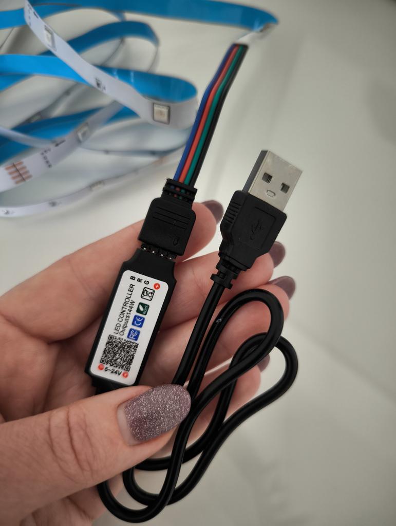 Светодиодная лента 🌟 Эта лента RGB 5050, т.е. кроме стандартных цветов она светится и другими цветами, оранжевым, салатовым, розовым и т.д. У меня 44key-2М Это значит, что она имеет длину 2 метра и переключается с помощью пульта (44 кнопки). Имеет много режимов мерцания и цветов. Работает от USB. В магазине можно приобрести ледку разной длины, а также выбрать для себя удобный вариант управления. 44key - переключается с помощью пульта как у меня. 3key - переключается с помощью кнопок на блоке. Bluetooth - с помощью смартфона. Для того чтоб приклеить ледку, необходимо снять защитную синюю пленочку, под которой находится клейкая основа. Длину можно регулировать и спокойно отрезать лишнюю. Отрезать нужно в определенном месте, там где нанесены четыре полосочки. Пришла в смотанном виде. Если заказывать большей длины, она будет на бабине, чтобы вам было удобно ее клеить. Рекомендую и ледку, и магазин. Товар всегда качественный, надёжно упакованный, доставка достаточно быстрая, цены хорошие 👍🏻