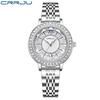 CRRJU Новые женские часы со стальным ремешком и бриллиантами, модные деловые часы