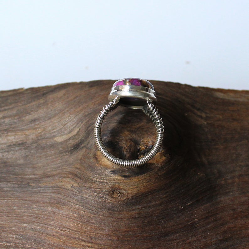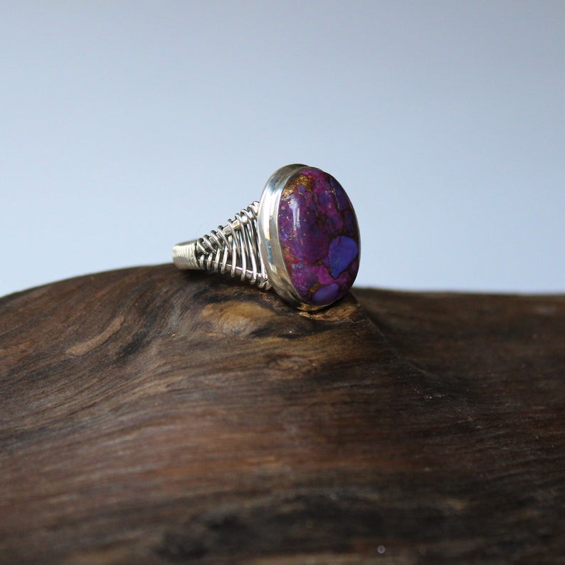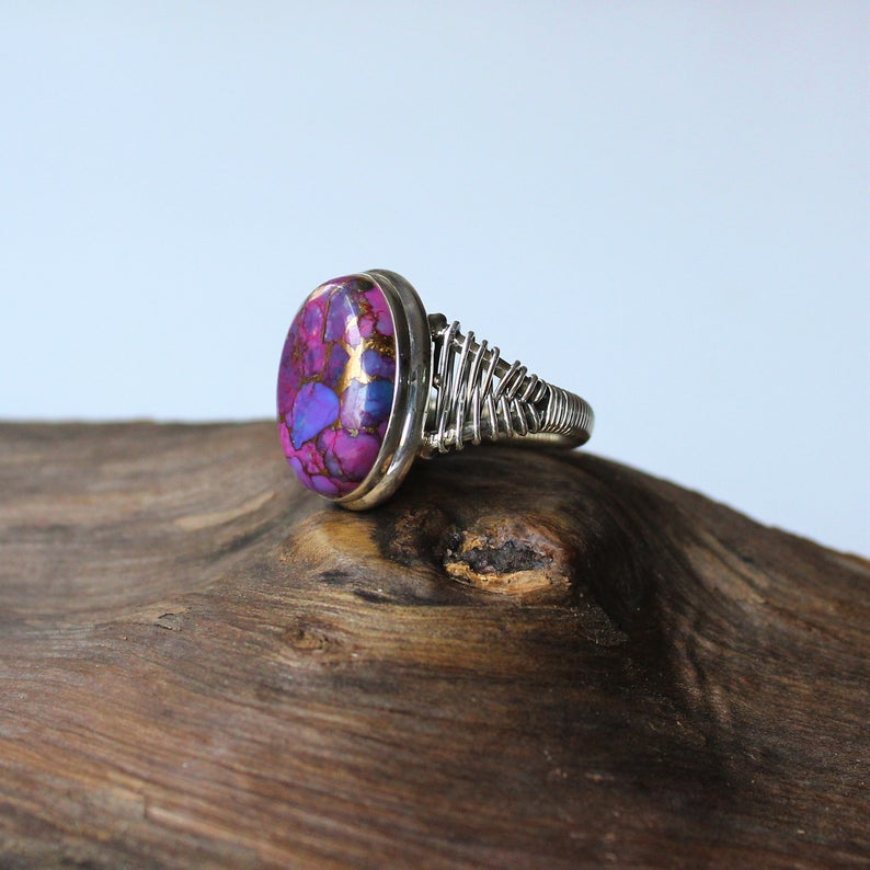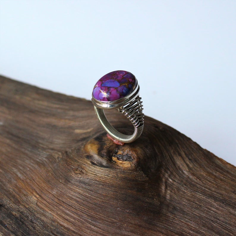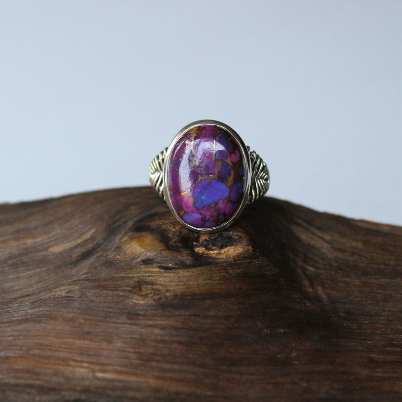Кольцо с фиолетовой медной бирюзой, овальное кольцо с драгоценным камнем, кольцо из стерлингового серебра 925 пробы, кольцо с фиолетовой бирюзой, рождественский подарок, подарок на День святого Валентина,