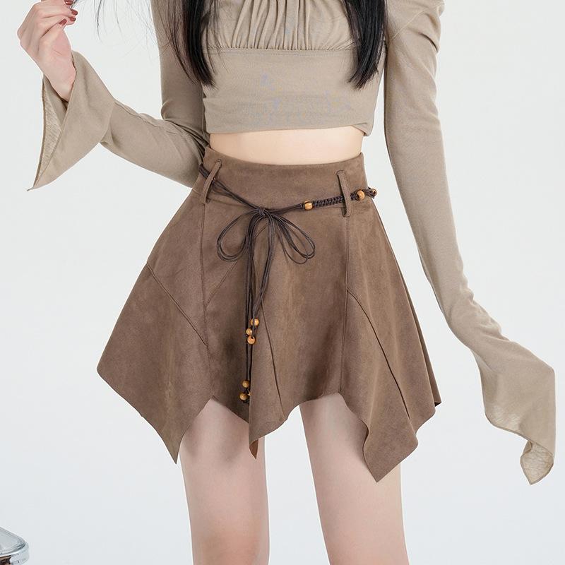 Винтажная плиссированная юбка цвета хаки, женская уличная мини-юбка с высокой талией в стиле Харадзюку, асимметричная повседневная мини-юбка в стиле 90-х годов Y2k