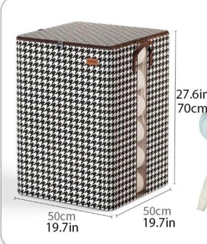 На картинке и в описании предлагается надёжный складной короб для хранения габаритных постельных принадлежностей (одеяла, подушки). Но на деле это очень большая, но очень хлипкая сумка из тонюсенькой ткани типа спанбонда и с такими же хлипенькими замочками-молниями. Много туда не положишь и тяжёлые вещи тоже не удержит. Ну очень хлипкое. Денег таких не стоит..