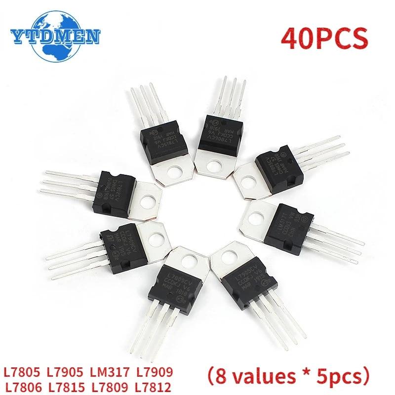 40 шт. регуляторы напряжения IC TO-220 L7805 L7806 L7809 L7812 L7815 L7905 L7909 LM317T Mosfet Transistor Ассортиментный комплект — купить товар онлайн с бесплатной доставкой по всему миру!