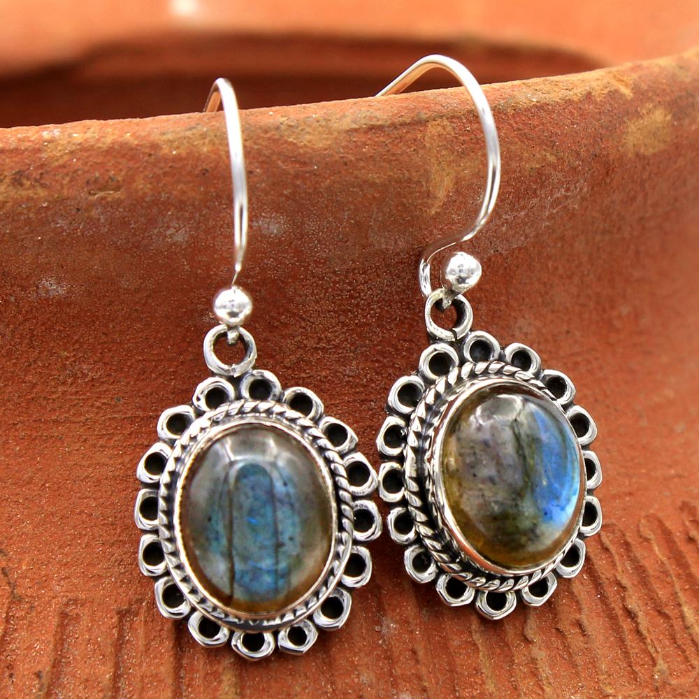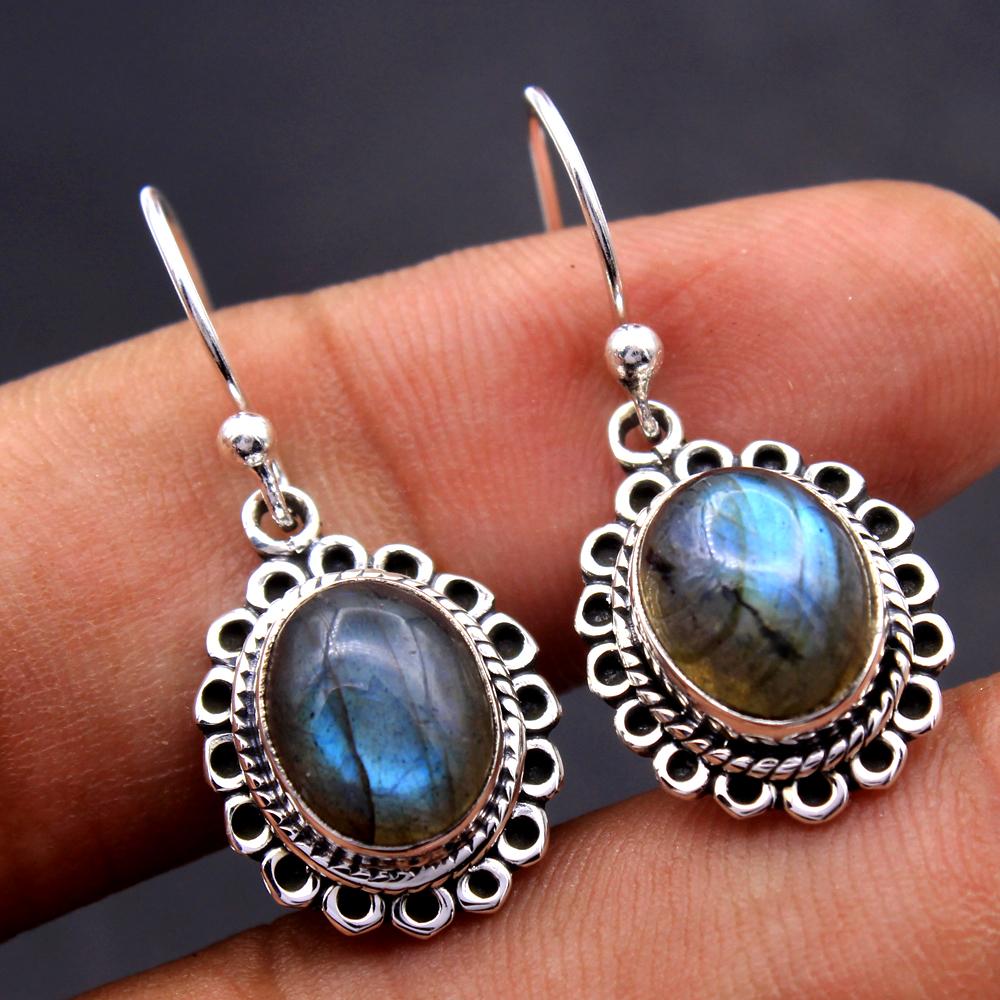 Ювелирные изделия из стерлингового серебра 925 пробы ручной работы с лабрадоритом и драгоценным камнем для женщин, висячие серьги