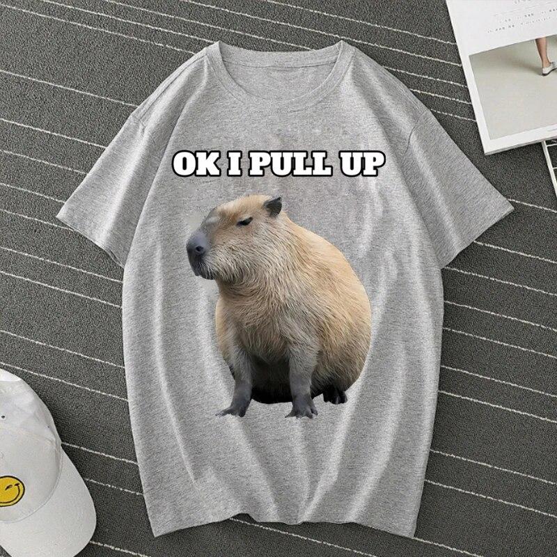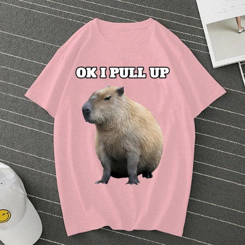 OK I PULL UP Capybaras, летняя футболка большого размера, футболки с короткими рукавами, уличная футболка Capybaras, женская футболка унисекс, футболка унисекс