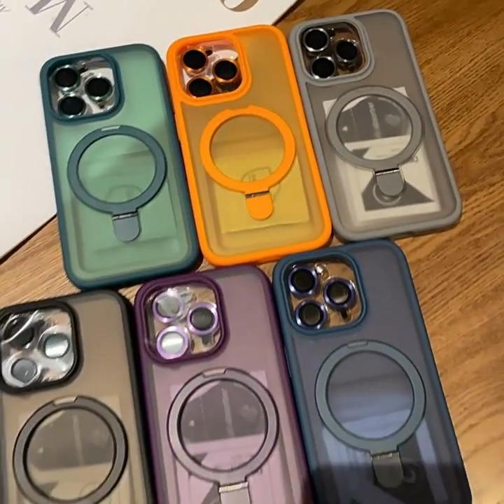 Роскошный матовый чехол-держатель для телефона iPhone 15 Pro Max 14 13 12 11 для Magsafe, противоударный металлический невидимый магнитный кронштейн, задняя крышка с пленкой для объектива