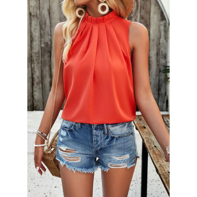 Элегантный весенне-летний однотонный топ без рукавов для женщин, пуловеры, блузки