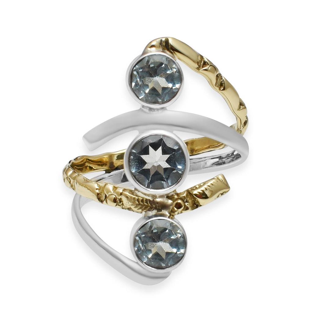 Серебряное кольцо ручной работы с голубым топазом