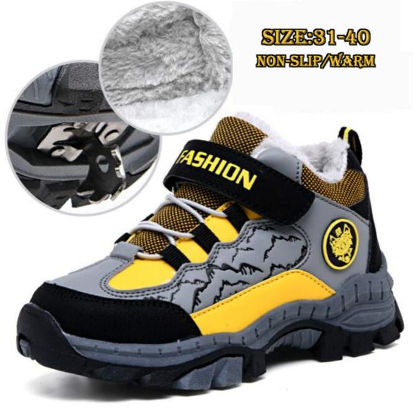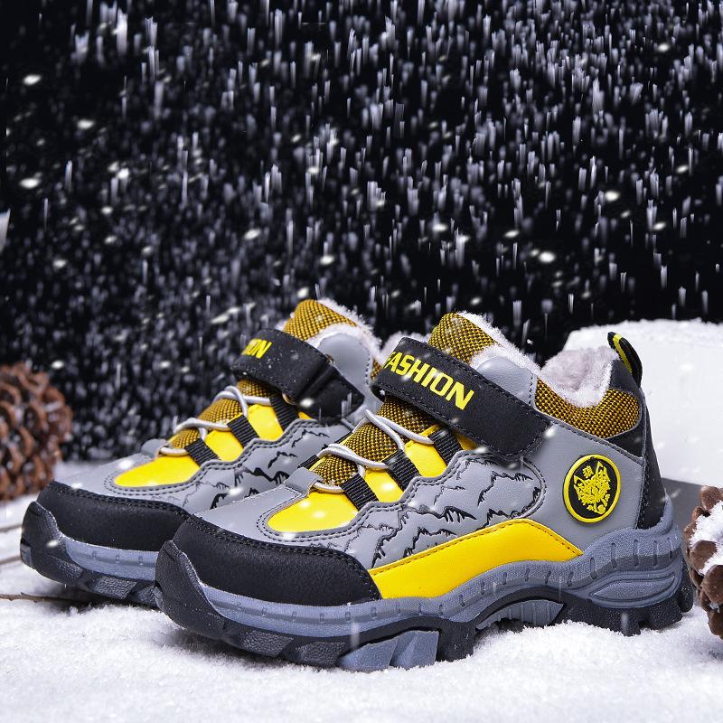 Детские повседневные баскетбольные кроссовки, водонепроницаемые походные туфли, кроссовки до щиколотки для мальчиков, зимние детские зимние сапоги, сохраняющие тепло, хлопковые ботинки, обувь для скалолазания