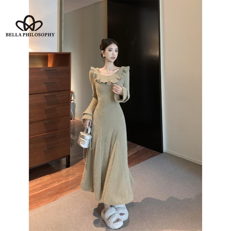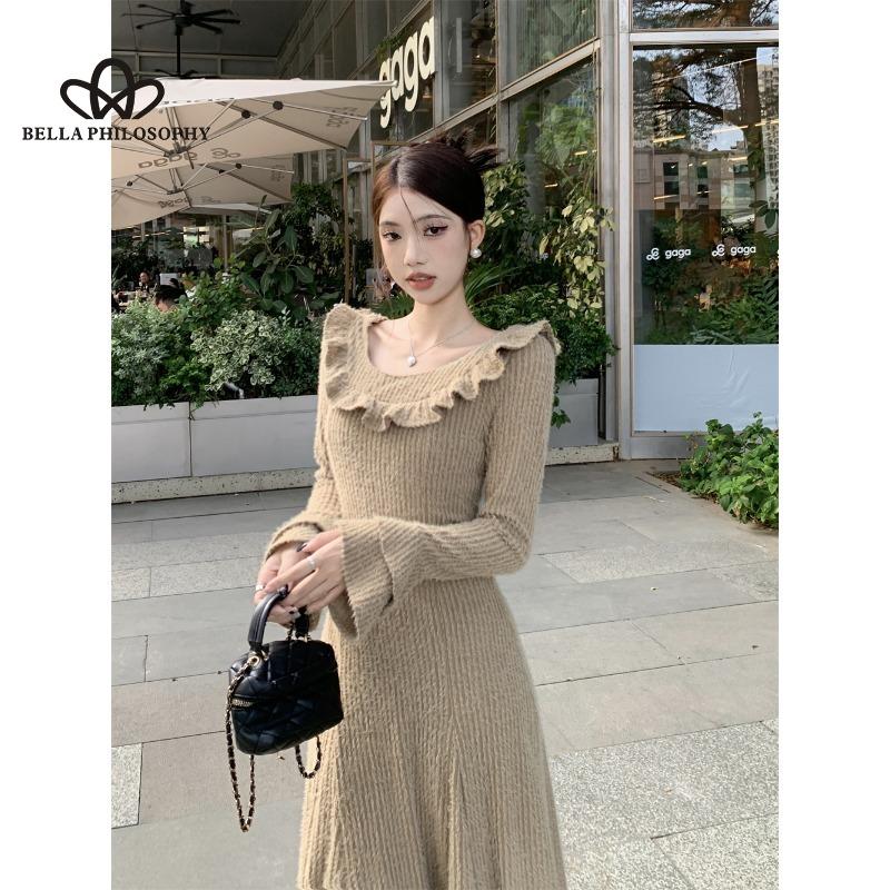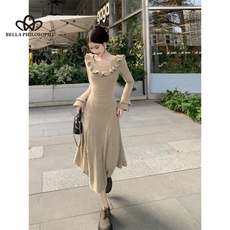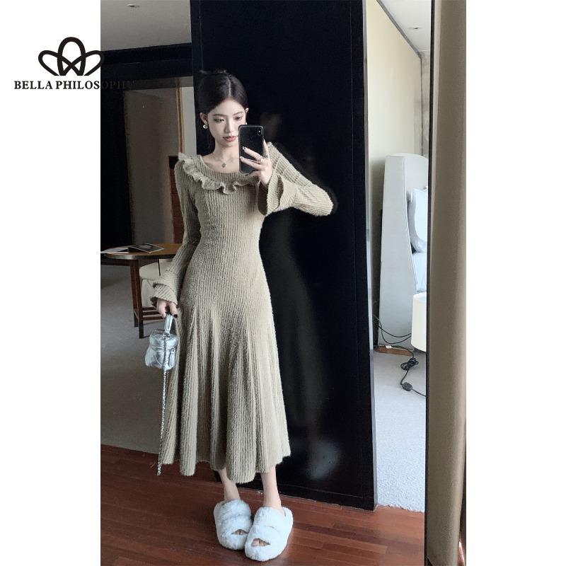 Корейский стиль, новый нежный свитер с круглым вырезом и краями ушей с длинной талией для похудения, однотонный свитер с длинными рукавами, платье-рыбий хвост