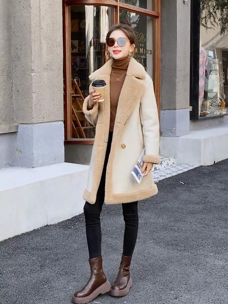 Женское универсальное пальто из замши ягненка, зимнее бархатное утолщенное пальто средней длины с мехом ягненка — купить товар онлайн с бесплатной доставкой по всему миру!
