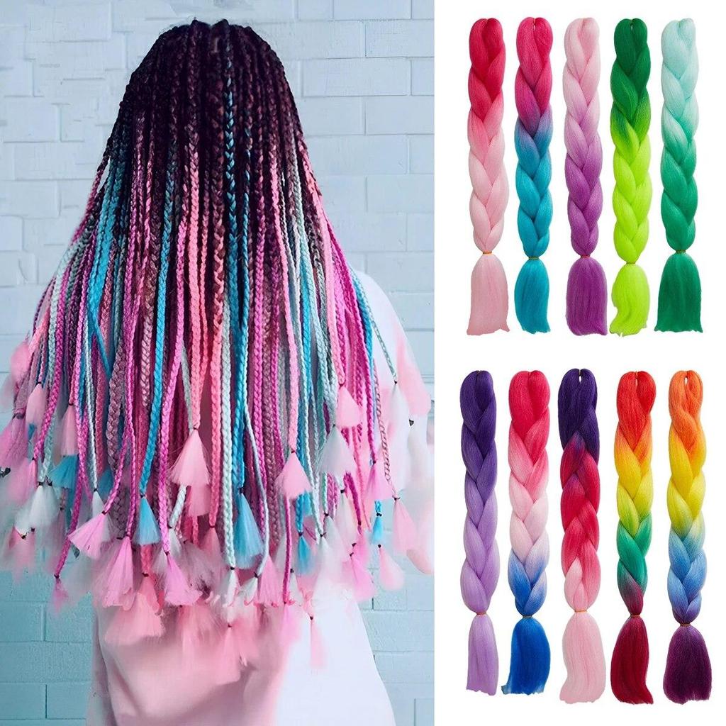 ALAN EATON Синтетические наращивания волос радужного цвета Jumbo Braid 24 дюйма, высокотемпературные волокна для наращивания волос, вязаные крючком своими руками