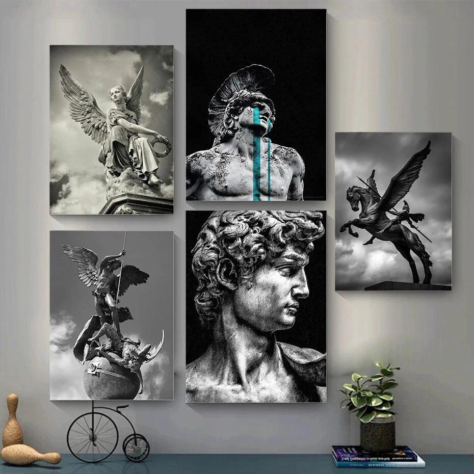 Винтажная греческая мифология, воин, скульптура, плакаты, принты, креативная картина «Слезы Ахилла», статуя, настенная живопись на холсте, без рамки