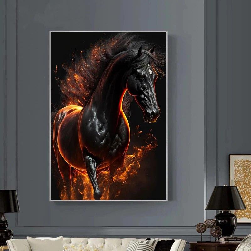 Абстрактная бегущая лошадь с огнем, холст, картина, современные изображения животных, постер и принты, настенное искусство для дома, гостиной, без рамки