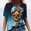 Новинка 2022 года, женские футболки с принтом черепа, женские топы с короткими рукавами, пуловер с v-образным вырезом, уличная одежда, футболки большого размера, летняя одежда