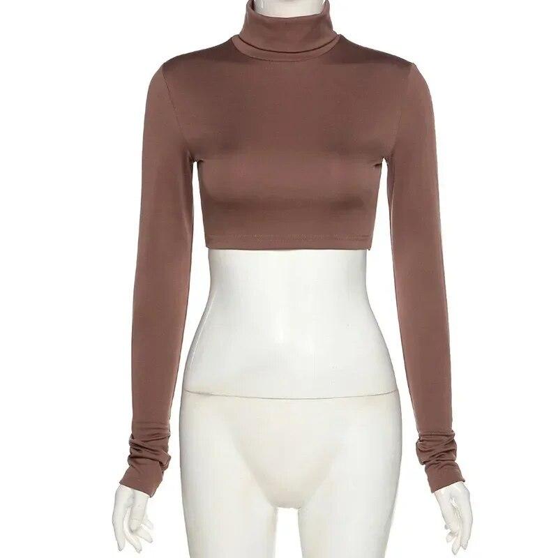 Модная однотонная укороченная футболка с воротником, женская осенняя эластичная повседневная облегающая базовая майка, женская уличная одежда, элегантная футболка Tess 30385
