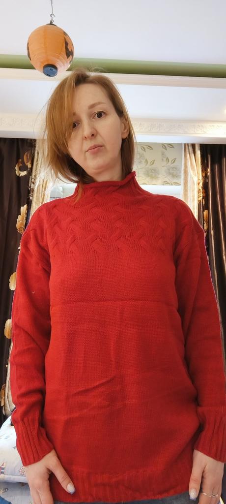Полувер пришел в течение месяца. Цвет немного отличается. Ошиблась с размером, в таблице не верно выбрала размер. Нужно было на мой 100-82-104 выбирать М Буду возвращать