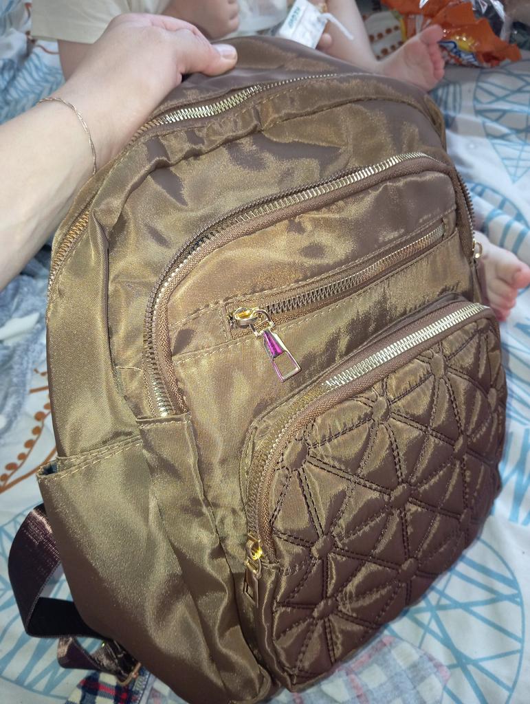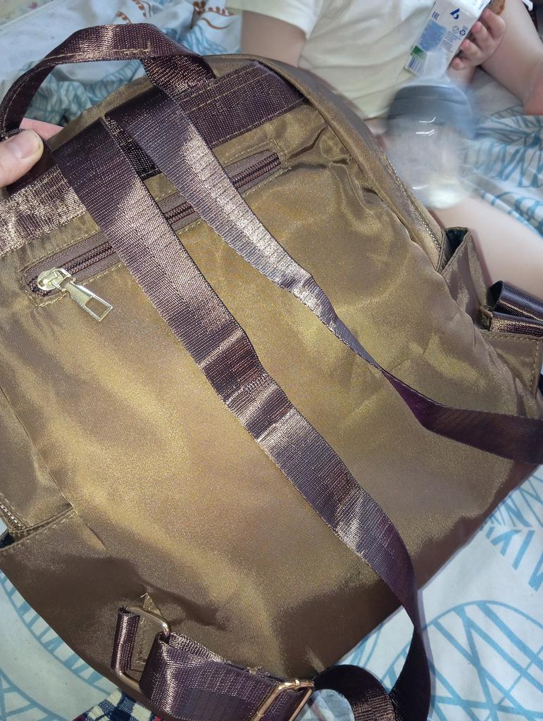 Рюкзак лёгкий,нарядный,сшит качественно,люблю,когда свободные руки. Рекомендую! У рюкзака много отделений и это очень радует,а главное,что есть карман,который к спине,туда можно положить документы и до них никто не доберётся))) Цвет красивый шоколадный,завтра выгуляю его.