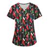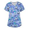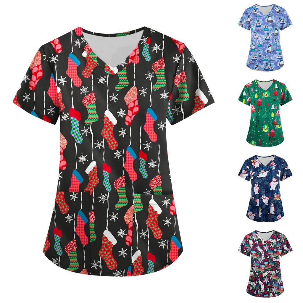 Женские топы с коротким рукавом и v-образным вырезом, рождественские топы с мультяшным рисунком, рабочие футболки с карманами, непозиционирующийся принт