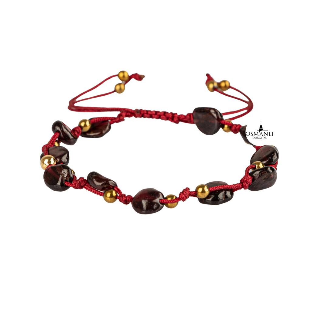 Браслет из макраме с гранатом бордового цвета натуральной огранки из натурального камня