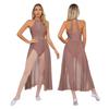 Женский балетный костюм для литургического поклонения, длинное платье с разрезом по бокам, фигурное катание, танцевальное представление, пэчворк, танцевальная одежда