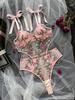 Осенний новый ультратонкий сетчатый сексуальный цельный забавный комплект с французской цветочной вышивкой