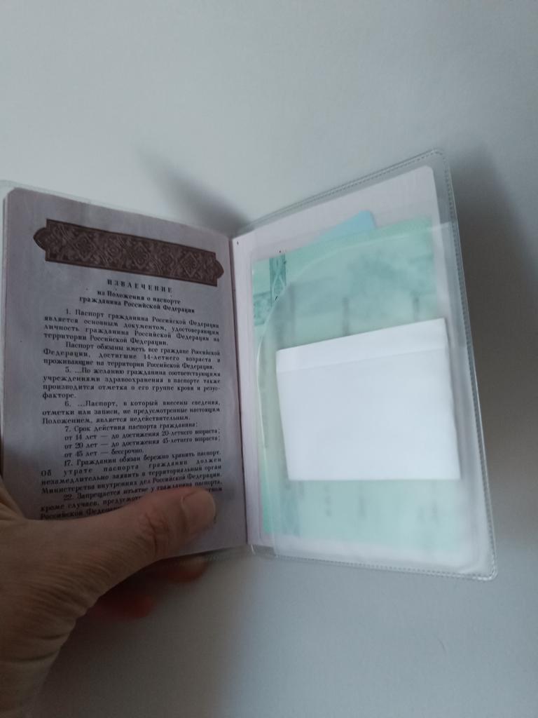 Прозрачная обложка Обложка неплохая, но в самом первом кармашке полис не держится совсем. Поэтому прежде чем куда-то выходить с документами - потрясите, проверьте, переложить при необходимости. Я просто переложила его в другой кармашек и дело в шляпе. На паспорт подошло идеально, всё сопутствующее по кармашкам. Удобно, практично. Это уже вторая подобная обложка и должна сказать, что сносу им нет. С первой ходила очень долго и поменяла лишь потому, что захотелось новенькую 🤣 Очень рекомендую 💟