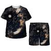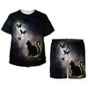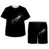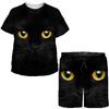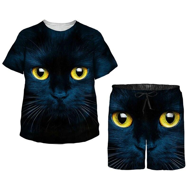 Летний комплект для детей, милый топ с короткими рукавами и шортами с принтом «Кейт», черный спортивный костюм, кавайные пижамы с героями мультфильмов для мальчиков и девочек
