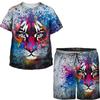 Детская одежда для детей от 1 до 14 лет, модный костюм для мальчиков и девочек, летняя детская футболка с короткими рукавами и тигром, повседневная уличная одежда с 3D принтом