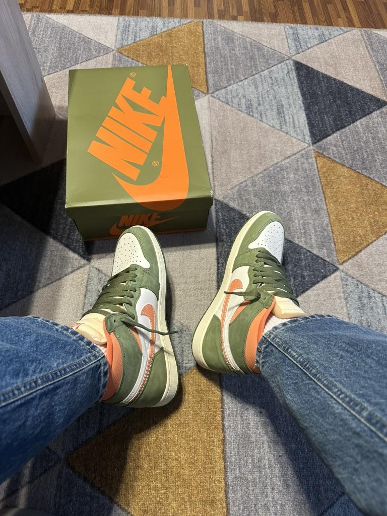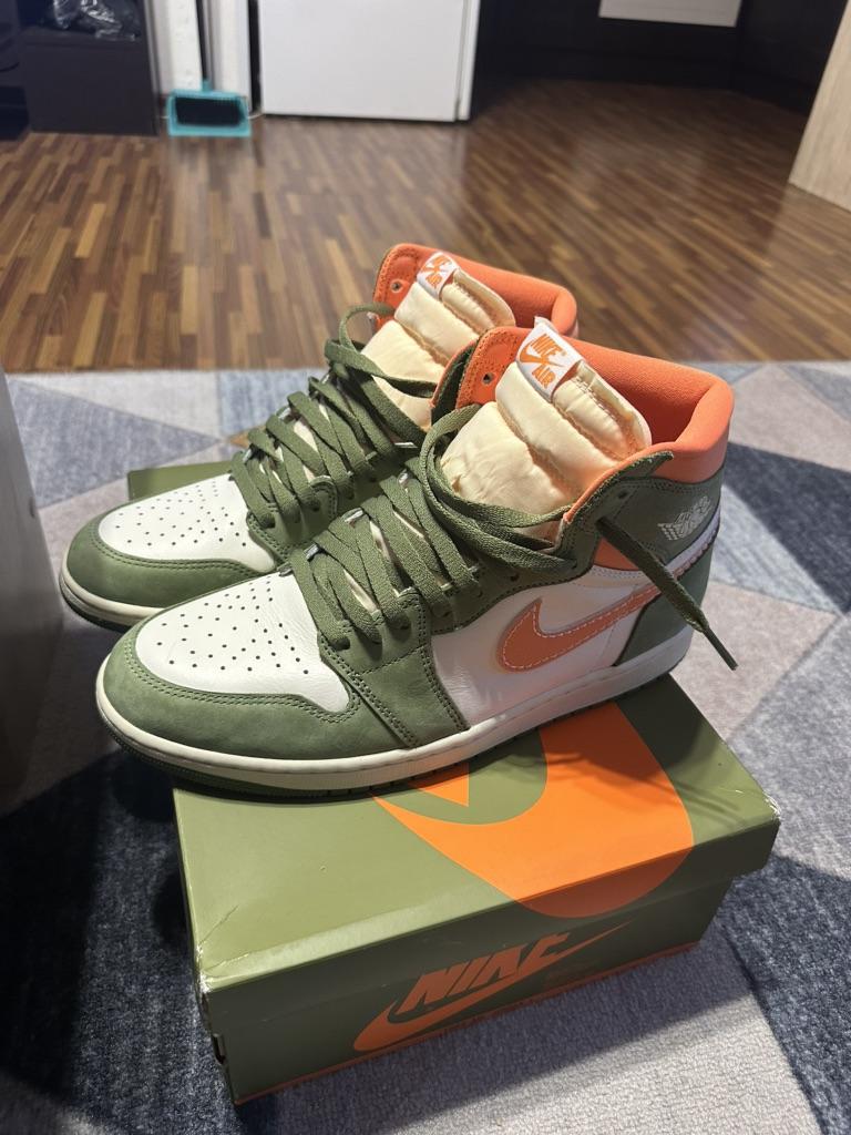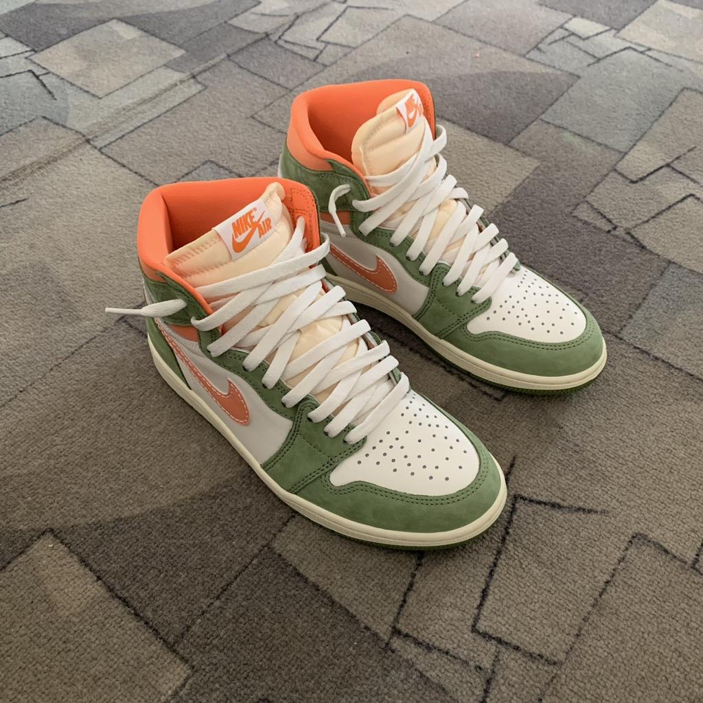 Мужские кроссовки Air Jordan 1 Retro High OG Craft Celadon Green Sky-J-Light-Olive Bright-Mandarin FB9934-300 — купить товар онлайн с бесплатной доставкой по всему миру!