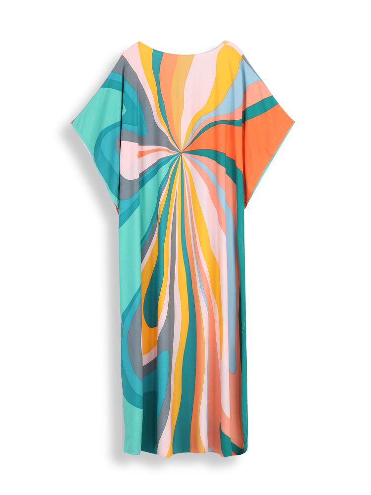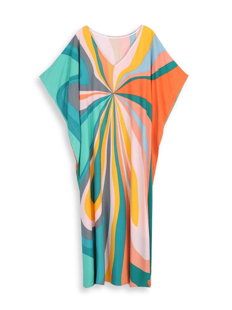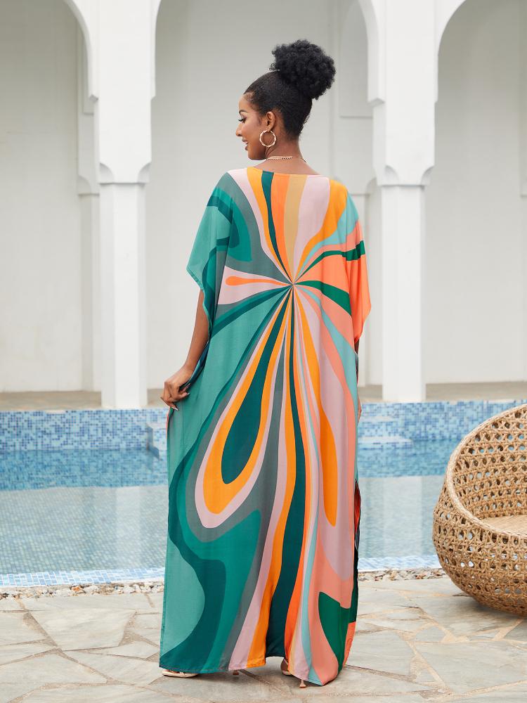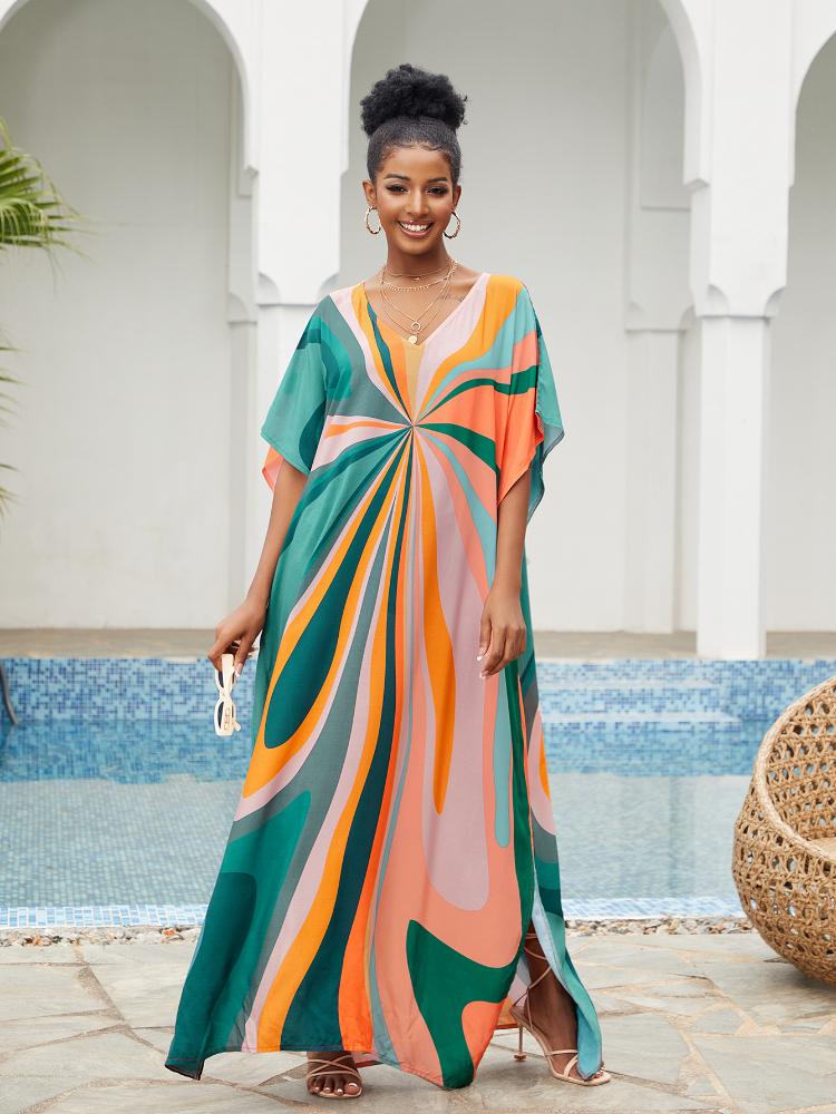 EDOLYNSA Кафтан больших размеров с богемным принтом, летнее длинное пляжное платье, женская домашняя одежда, купальный костюм, накидка, свободный кафтан