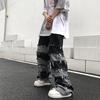 Мужские негабаритные винтажные лоскутные джинсы в стиле хип-хоп с широкими штанинами, мешковатые рваные потертые джинсы Y2K, уличная одежда в стиле гранж для мужчин