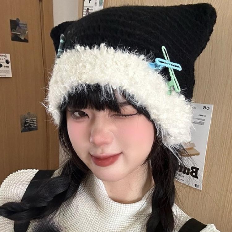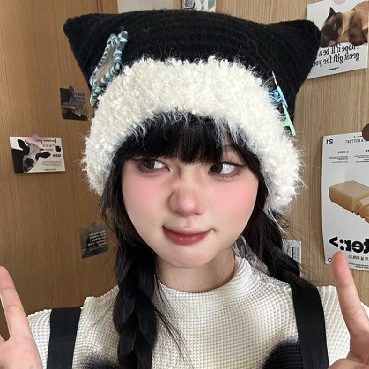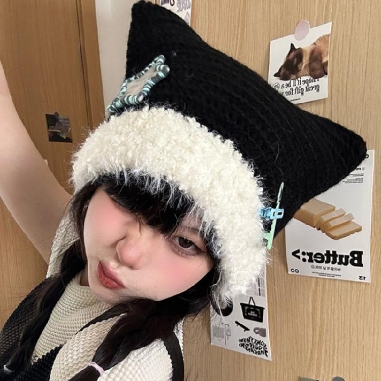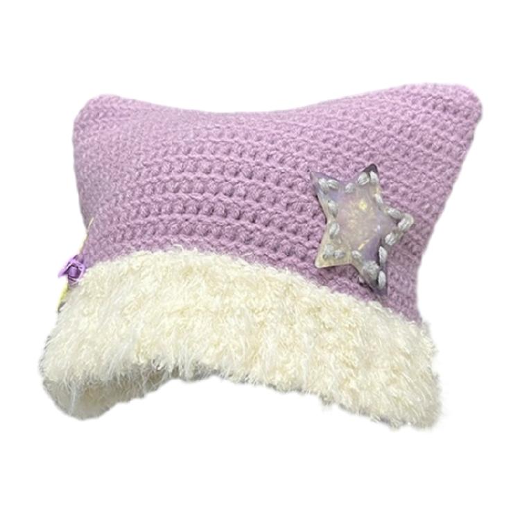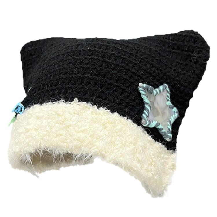 Шапка с кошачьими ушками и звездами Y2K, шапка-бини для милых девочек, модная меховая шапка с черепом, женский пуловер, зимняя повседневная шапка, головные уборы