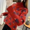 Свитер с высоким воротником и принтом для женщин, осенне-зимний жаккардовый вязаный нижний свитер для женской зимней одежды