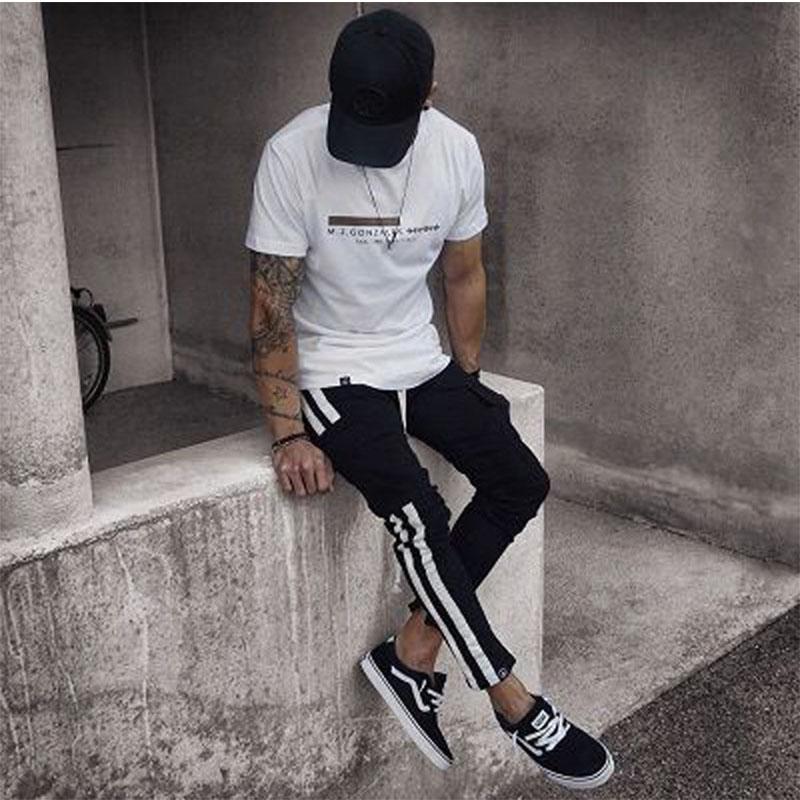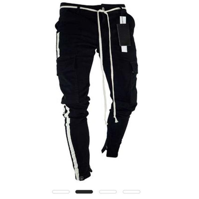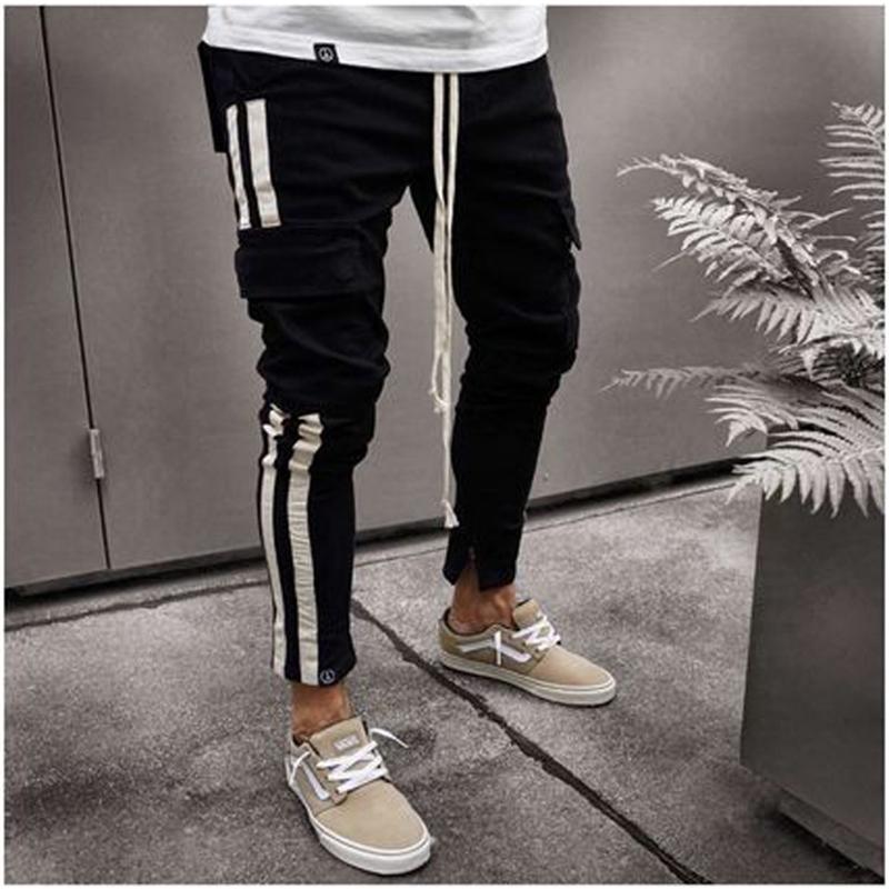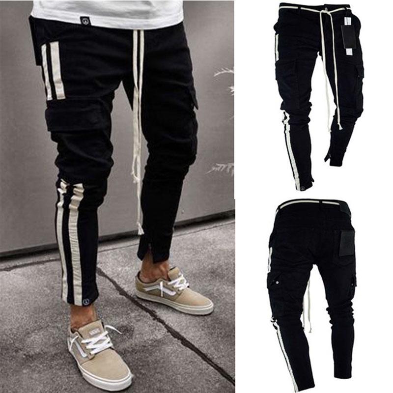 Мужские джинсы с несколькими карманами и застежкой-молнией, джинсы с боковой лентой