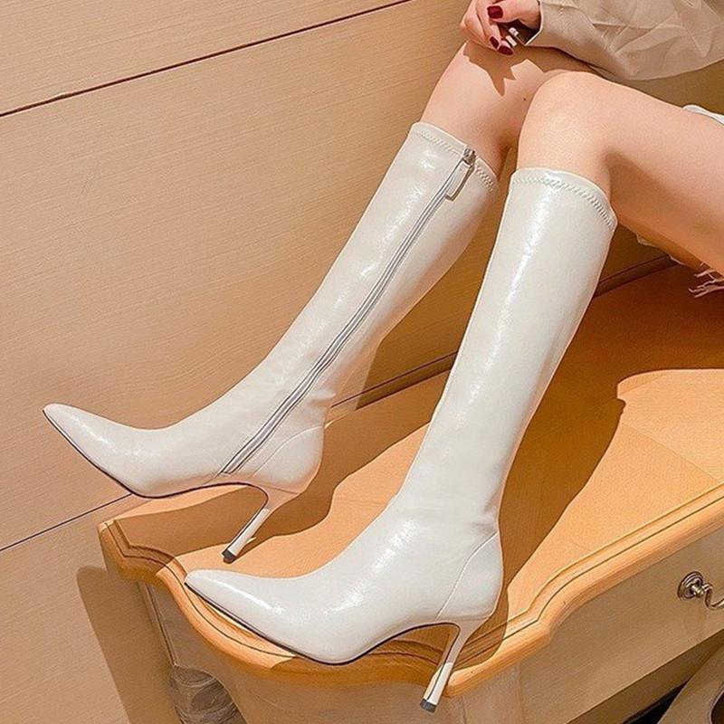Осенне-зимняя обувь. Сапоги на высоком каблуке. Женские сапоги. Сапоги на резинке с острым носком. Сапоги на тонком каблуке и высокие сапоги.