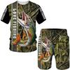 Летняя уличная одежда для рыбалки, мужская футболка + шорты, комплекты из 2 предметов, забавные охотничьи футболки Harajuku с круглым вырезом, спортивные топы с короткими рукавами