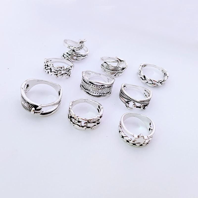 10 шт преувеличенные атмосферные кольца в стиле ретро, ювелирные изделия, индивидуальное кольцо на указательный палец