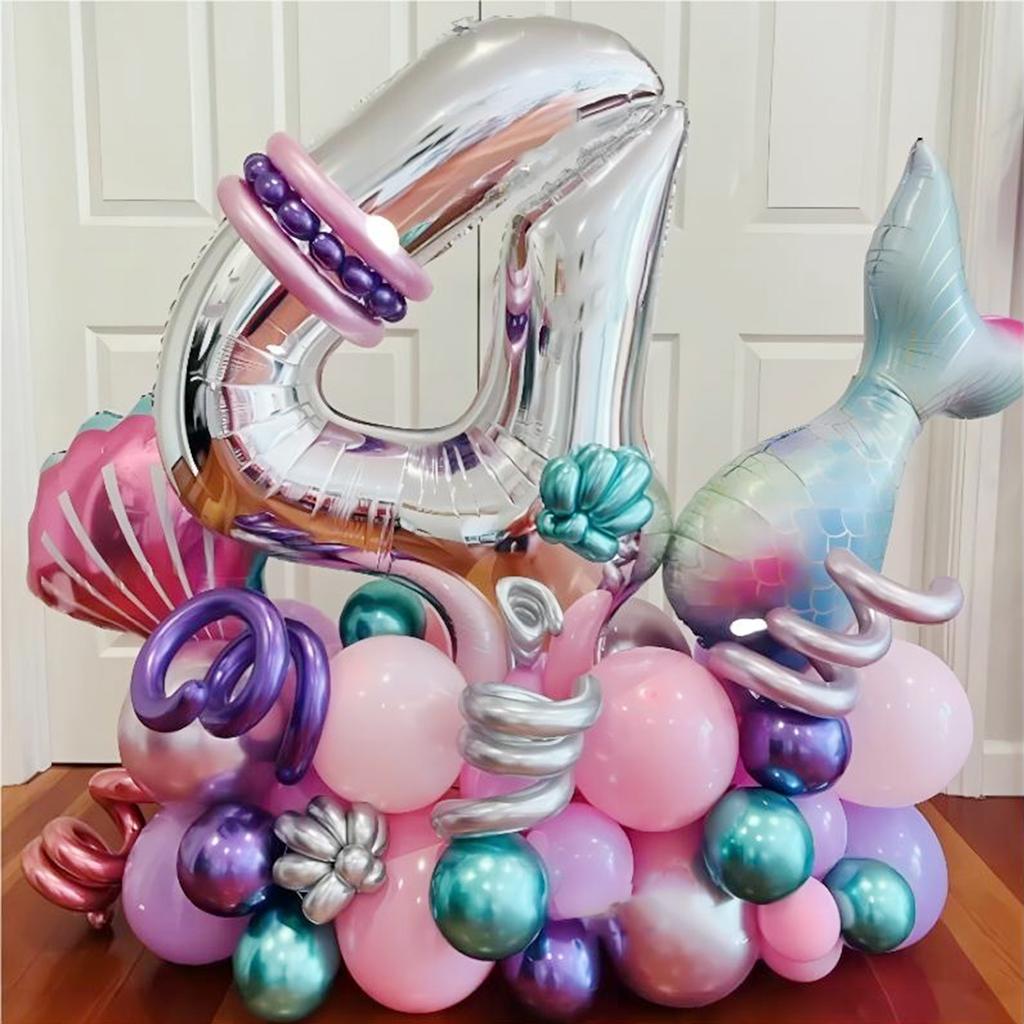 34 шт. воздушные шары с хвостом русалки, розовый, фиолетовый, воздушный шар из фольги с номером, детские украшения для дня рождения, вечерние шары с русалочкой — купить товар онлайн с бесплатной доставкой до всему миру!