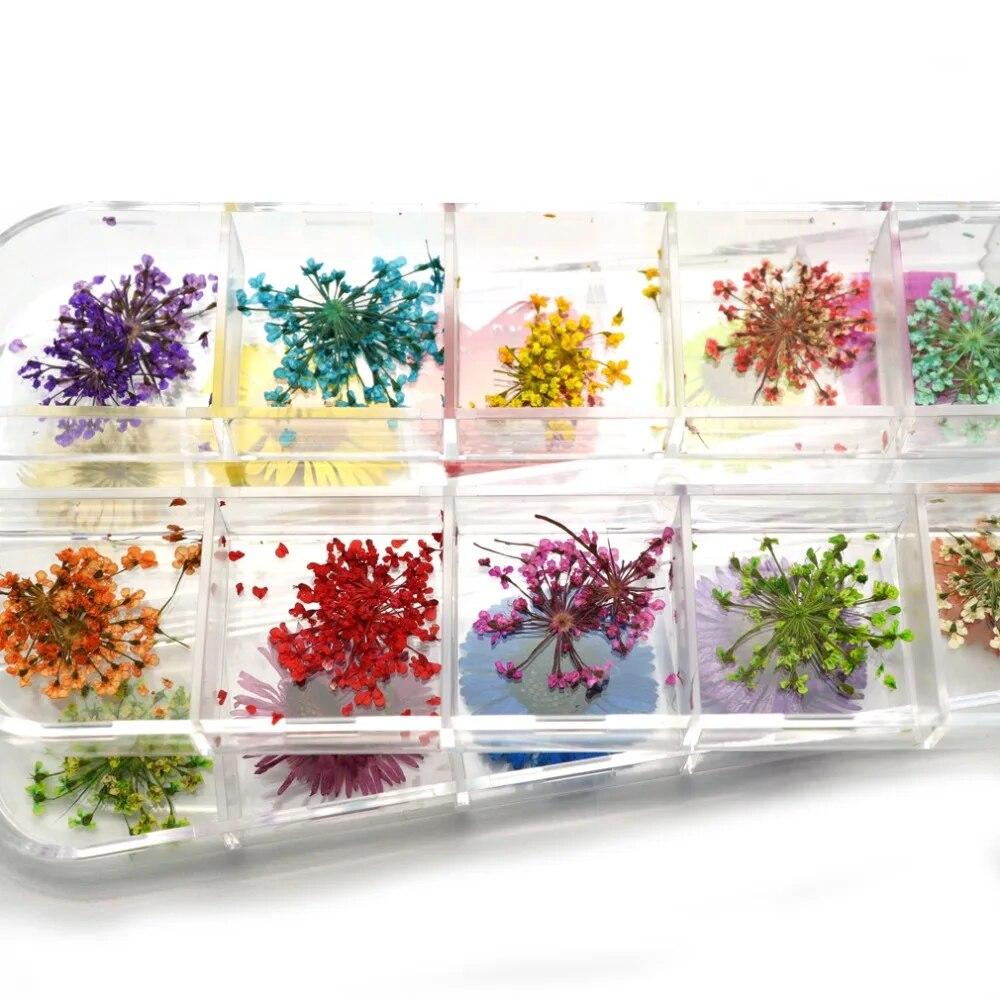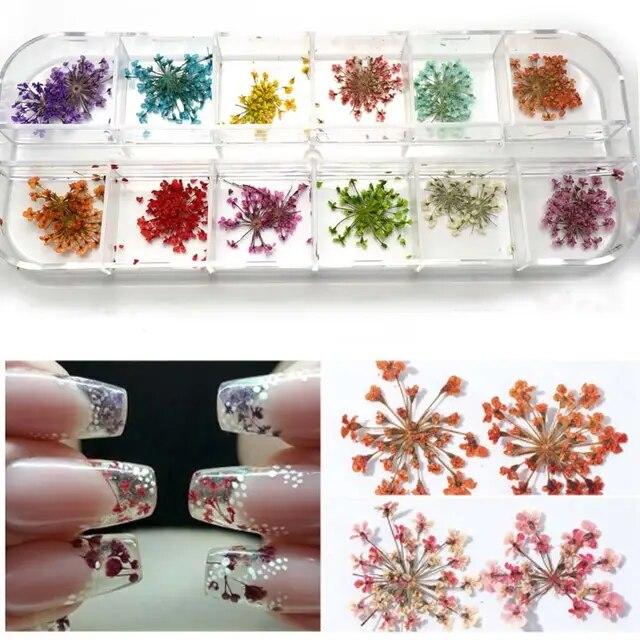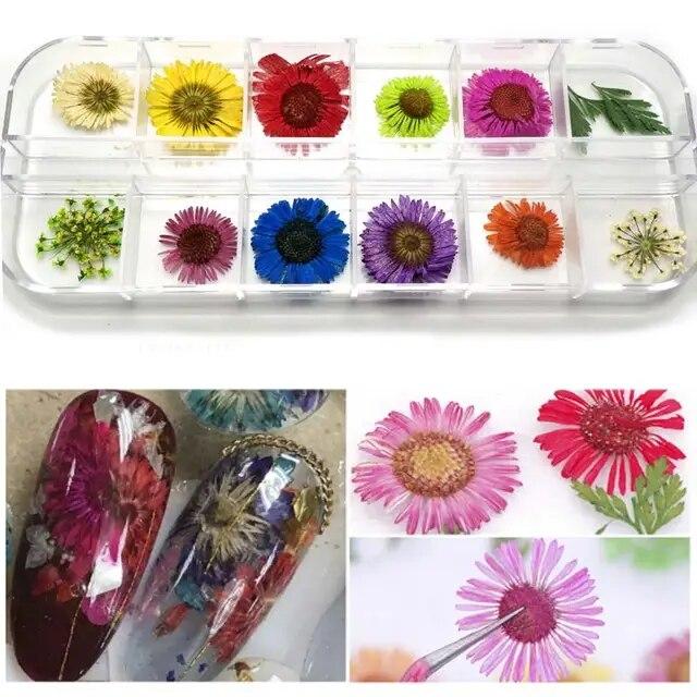 24 шт. 3D наклейки с сухими цветами, настоящие сушеные цветы, украшения для ногтей, советы, маникюрные инструменты «сделай сам», с коробкой