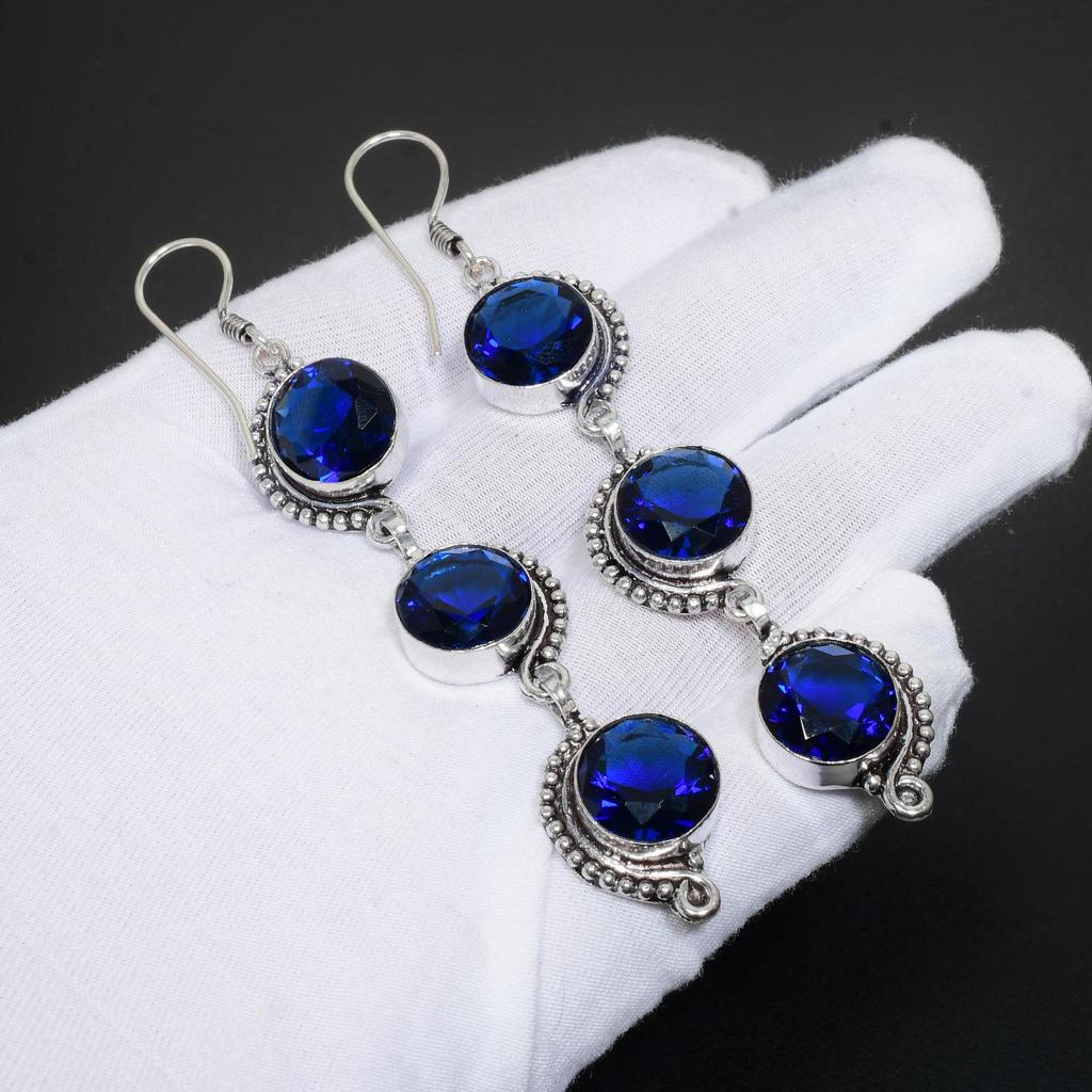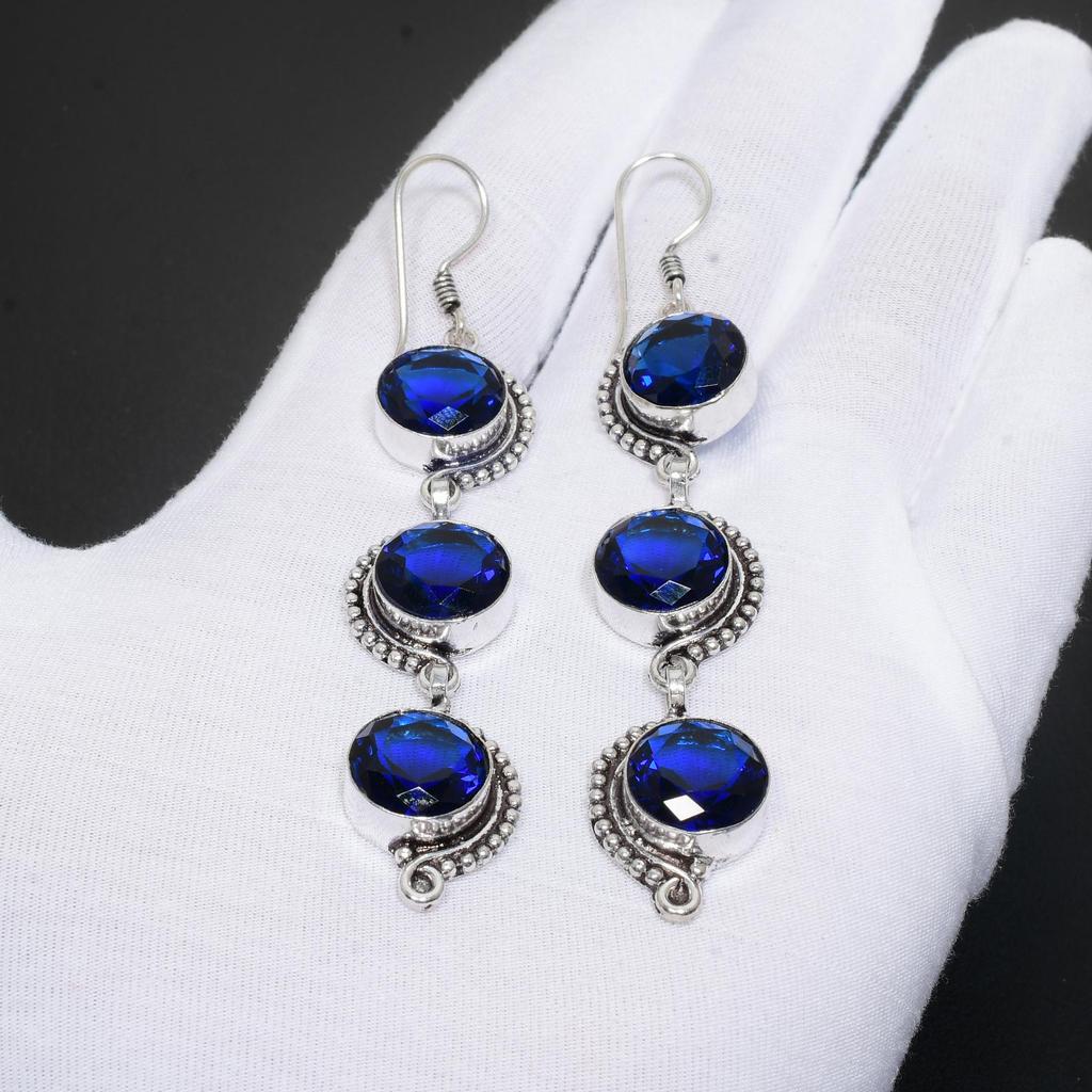 Лондонский голубой топаз, драгоценный камень, ювелирные изделия ручной работы из стерлингового серебра 925 пробы, серьги с лондонским топазом для женщин, ювелирные изделия для подарков, ювелирные серьги ручной работы
