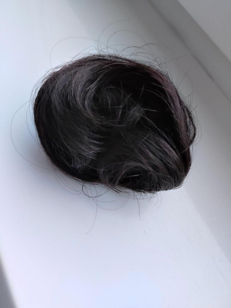 Заколка для волос в виде шарика. Выполнен на крабе, но на маленьком, т.е рассчитан на небольшое колличество волос, поэтому следует брать пару заколок и делать два симметричных ушка. Выполнен из искусственных волос, очень приятных тактильно. У продавца на выбор 4 цвета, я выбрала dark brown. Упакован в целлофановый пакет. Доставка 17 дней в сборной посылке в Польшу. Спасибо продавцу. С наилучшими пожеланиями,Ксения.
