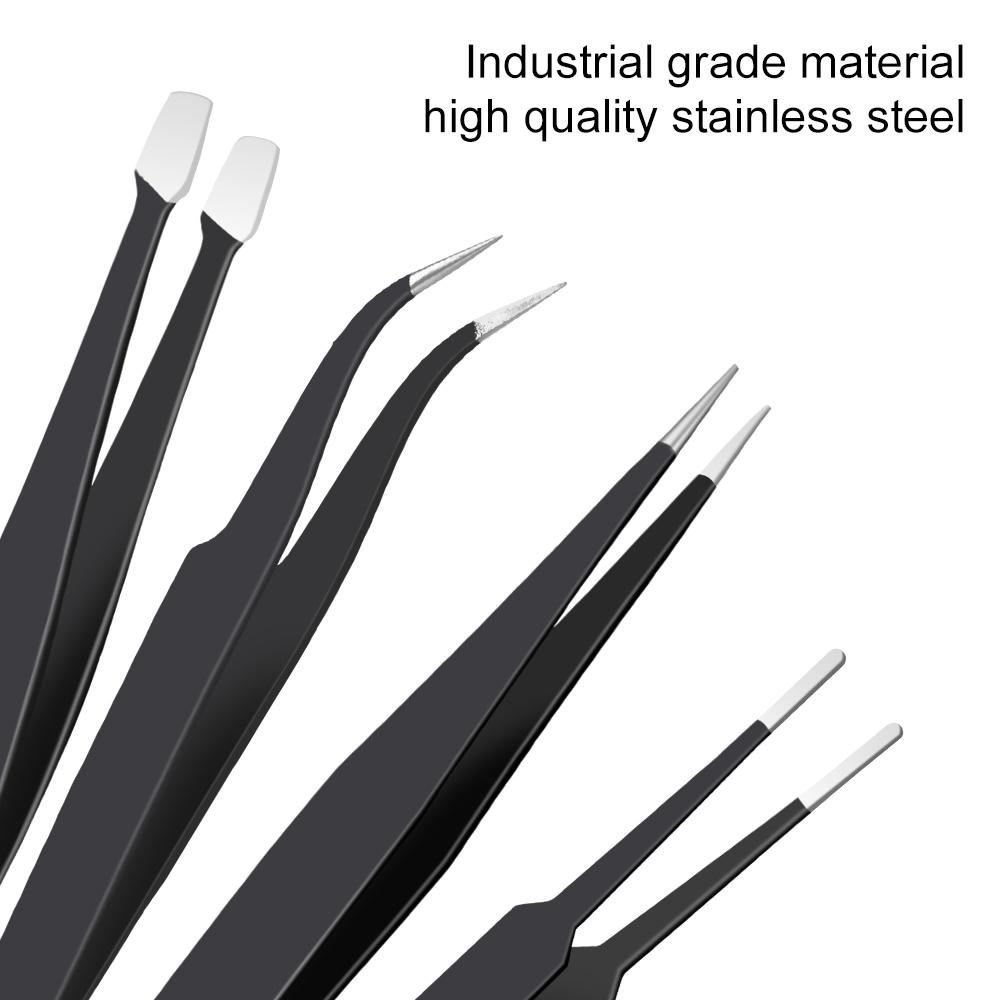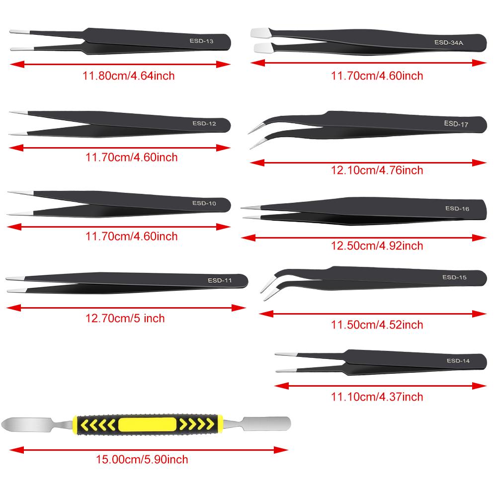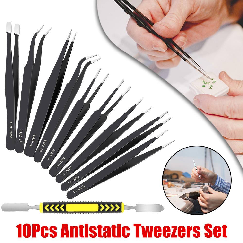 Пинцеты ESD, 10 шт./компл., инструменты для промышленного ремонта, прецизионные антистатические пинцеты для пайки электроники, изогнутые прямые пинцеты из нержавеющей стали
