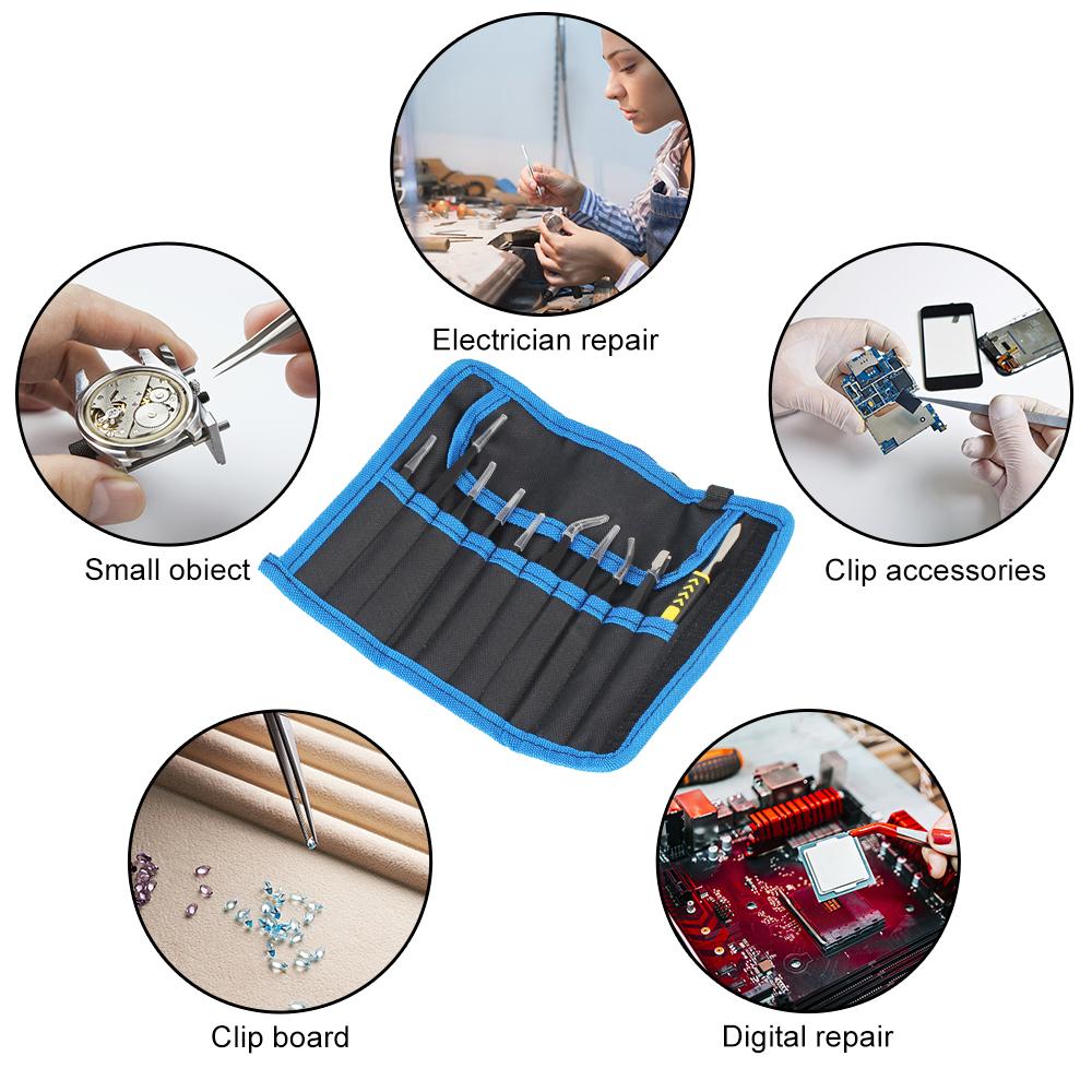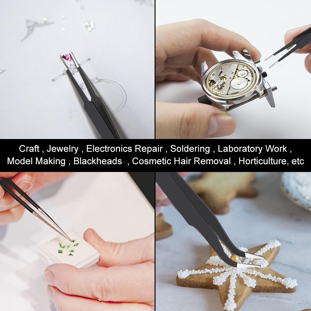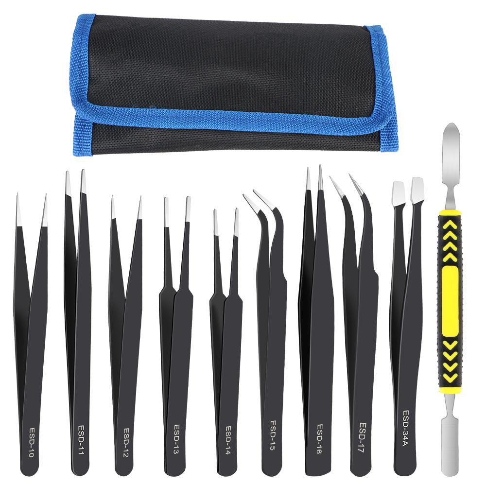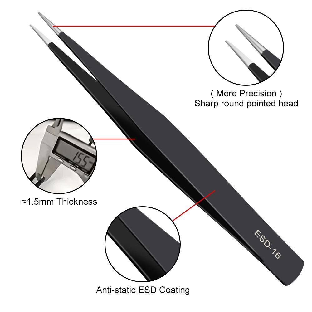 Пинцеты ESD, 10 шт./компл., инструменты для промышленного ремонта, прецизионные антистатические пинцеты для пайки электроники, изогнутые прямые пинцеты из нержавеющей стали