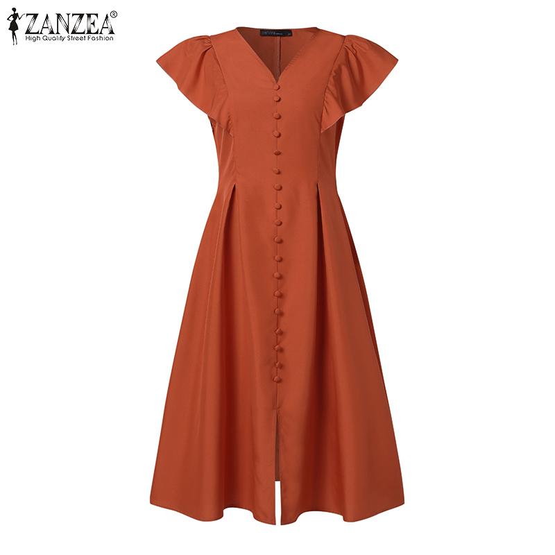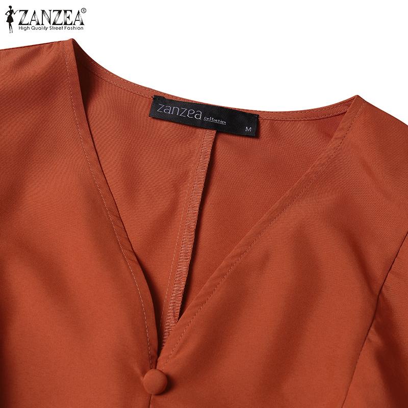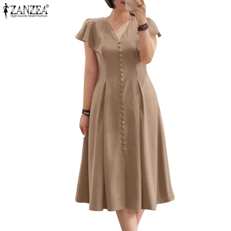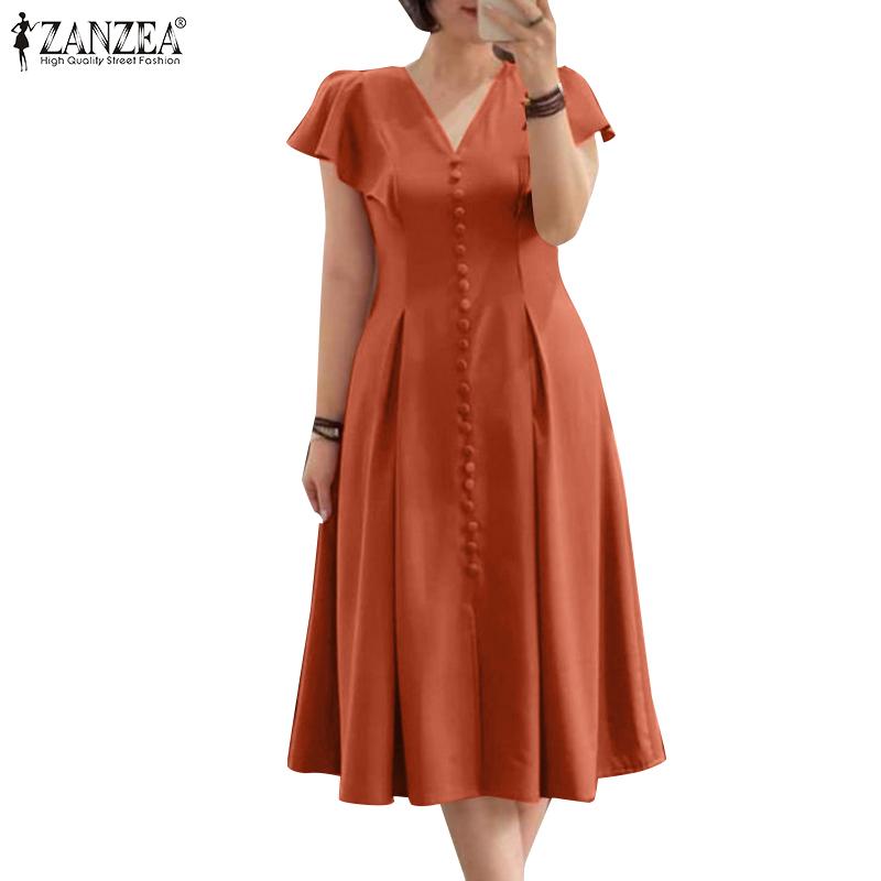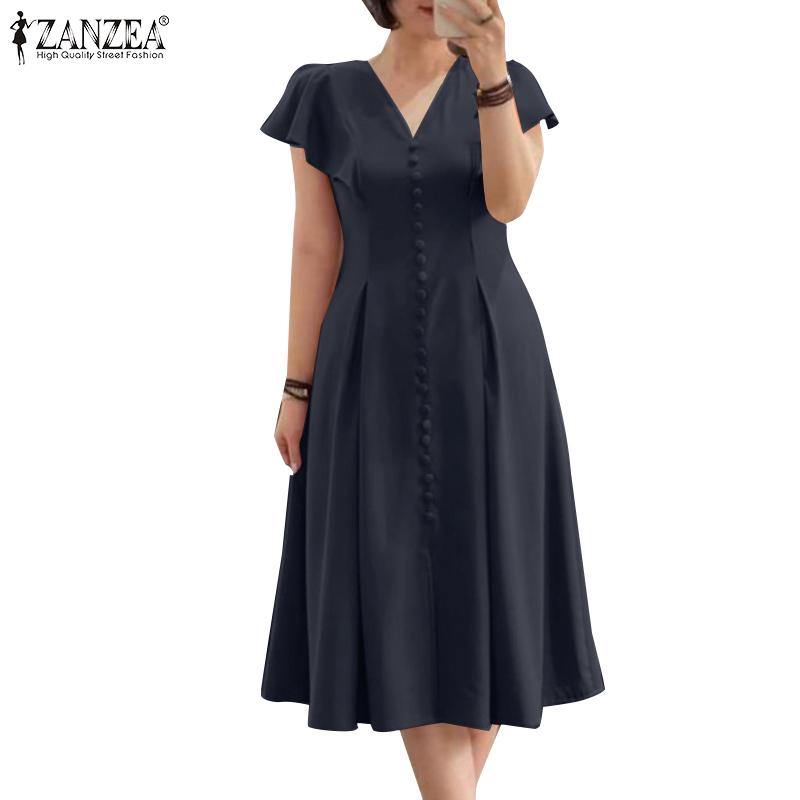 ZANZEA Женское повседневное свободное летнее платье с v-образным вырезом и коротким рукавом